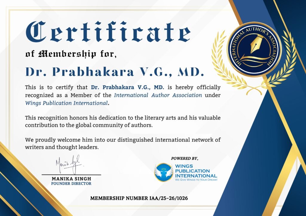 Dr. Prabhakara Viswakarma Govindachari, born in Chikmagalur, Karnataka, is a qualified medical doctor, specializing in Dermatology and Cosmetology. He graduated from Medical College, Bellary, and did post-graduation from Bangalore Medical College and Madras Medical College, Madras. He has vast experience of over 25 years and is currently practicing in Qatar.